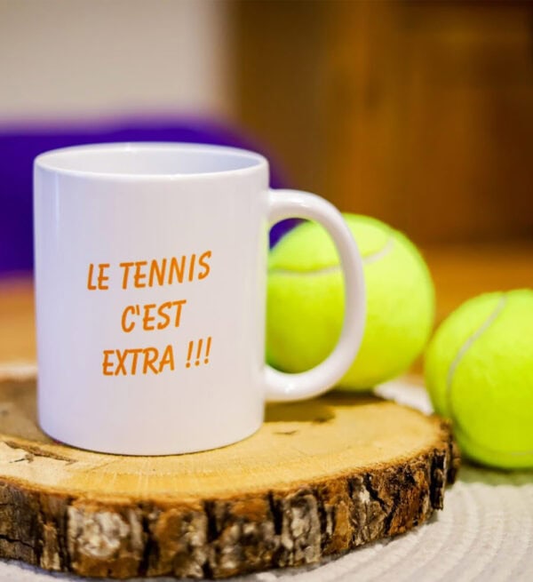 Ajoutez une touche de fun et d’énergie à vos pauses café ou chocolat chaud avec notre mug ExtraTennis – Édition Mascotte !